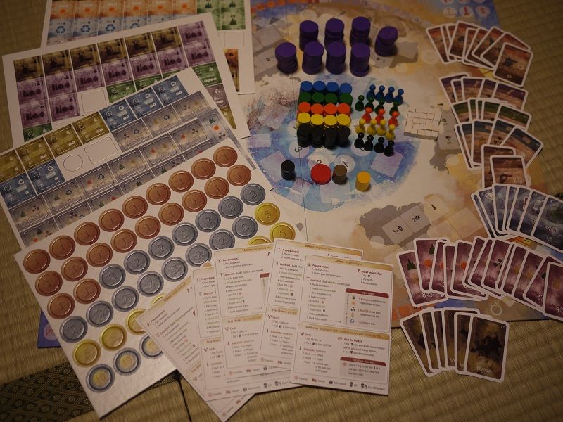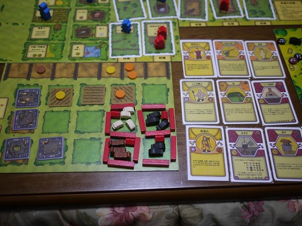 あと、上の写真だとわかりづらいですが、紫のでかいコマが1つと、青のコマが1つ、